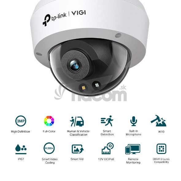 VIGI C230(4mm)Vonkajšia kopulová sieťová kamera VIGI s rozlíšením 3 MPx a farebným nočným videním