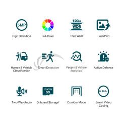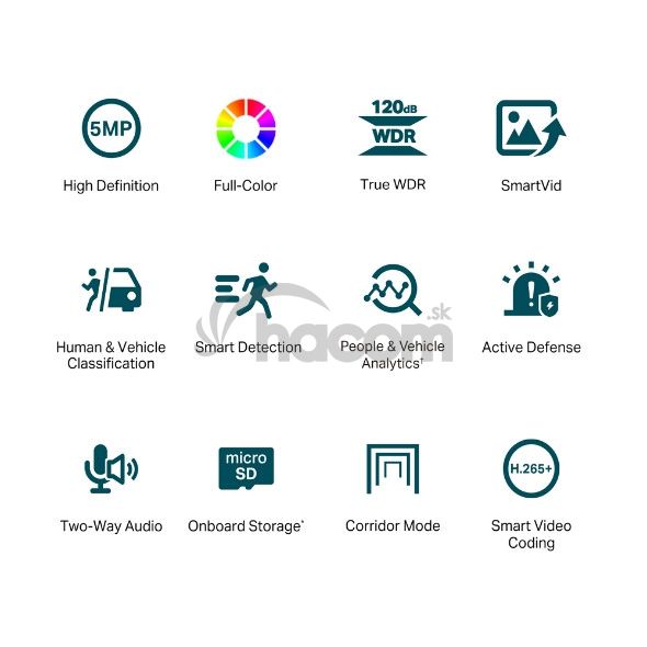 VIGI C450 (2.8mm) 5MP Full-Color Turret Network Camera Lux with IR/White Light, 25fps/30fps (2880x1620, 2048x1280, 1920x1080,1280x720), Ture WDR, PoE/12V DC, 2.8 mm Fixed Lens, Built-In Micro, Built-In Micro Night Vision (Up to 30 m), Active Defense, Two-Way Audio, On-Board Storage, Smart Detection (Motion Detection (Human Targets Classification), Camera Tampering, Line-Crossing, Area Intrusion), SmartVid (Smart IR, 3D DNR, BLC), Corridor Mode, ONVIF, Remote Monitoring, VIGI App, Web, VIGI Security Manager