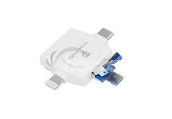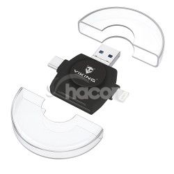 VIKING čítačkou pamäťových kariet V4 USD3.0 4v1 s koncovkou APPLE LIGHTNING / MICRO USB / USB / USB-CNová, moderná, extrémne ľahká a praktická čítačka pamäťových kariet so štyrmi redukciami APPLE LIGHTNING / MICRO USB / USB-A 3.0 / USB-C