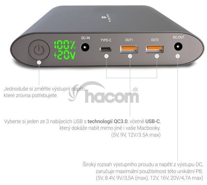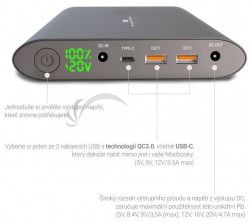 USB TYPE-C: 5V / 9V / 12V 3.0a (nabíjanie pre MacBook a ostatné zariadenia)