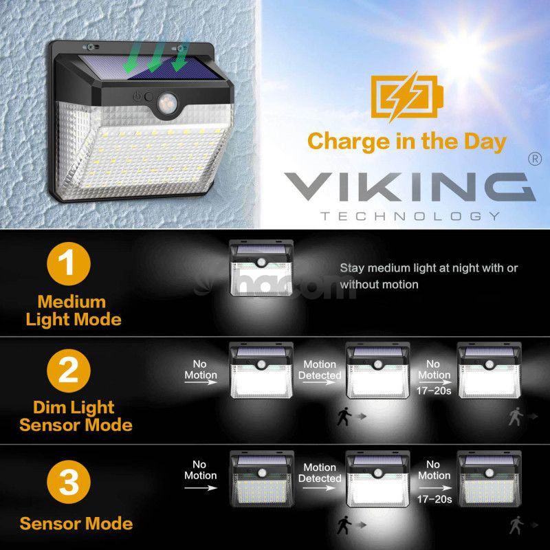 - VIKING Vonkajšie solárne LED svetlo s pohybovým senzorom LED 60ks