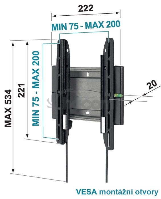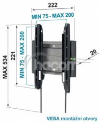 Fixný držiak, monitor iba 2 cm od steny, nosnosť 20 kg, uchytenie do 20x20 cm, odp. uhlopriečka 19-26 "Parametre