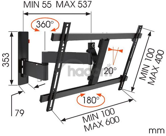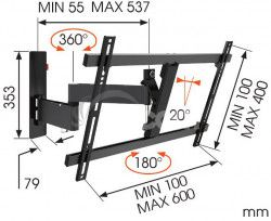 W53080 sa vyznačuje štýlovým ramenom, ktoré ponúka ľahkú manipuláciu. Obrazovku je možné odklopiť od steny, natáčať do strán a sklápať až o 20 ° nadol. Vďaka dlhšiemu ramenu možno TV natočiť kolmo k stene, popr. odtiahnuť po kolmici od steny.