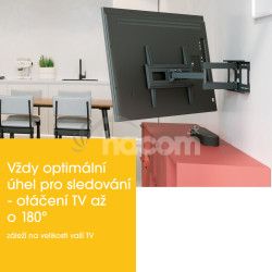 Spoľahlivý držiak s dvojitým ramenom a 4 kĺby. Tento robustný nástenný držiak je vhodný pre televízory s uhlopriečkou od 40 do 77 palcov. Ľahko si poradí s televízormi s hmotnosťou až 35 kg. Umožňuje natáčanie TV až o 180 ° a náklon dole o 10 °.Držiaky z radu UP spoločnosti Vogel sú nielen praktické, ale aj kvalitné. Tento držiak bol dôkladne testovaný, aby vydržal čo najdlhšie. Aj pri trojnásobnej maximálnej hmotnosti televízora zostáva držiak bezpečný. Veľmi dôležité v rušnej domácnosti!