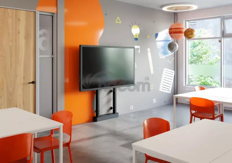 Podlahový stojan RISE 2005 s motorizovaným zdvihom a uchytením k stene je určený pre interaktívne ploché displeje s uhlopriečkou až 86" (max. 140 kg).Špeciálne vyvinutý pohon QuickRise™
