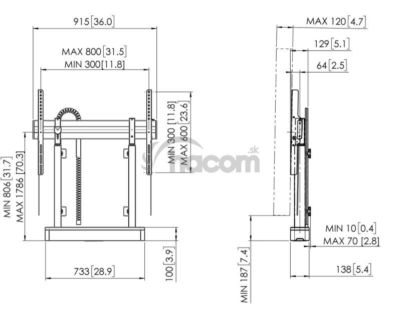 - Vogel's RISE 2005B podlahový lift 86", dvojitý, 806-1786 mm, čierny RISE 2005B