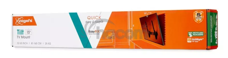 S týmto nástenným držiakom televízora QUICK Tilt si uľahčíte prácu a zaistíte pohodlie. Inštalácia je veľmi jednoduchá, TV pripevníte na stenu za max. 20 minút. Naklonením držiaka o 5°, 10° alebo 15° si môžete nastaviť požadovaný pozorovací uhol, čo je funkcia, ktorá je obzvlášť príjemná, pokiaľ je váš televízor namontovaný o niečo vyššie na stene. Držiak je vhodný pre televízory s uhlopriečkou 32 až 65 palcov a hmotnosťou do 25 kg.