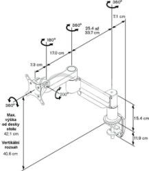 Profesionálny držiak na menšie LCD pre montáž na pracovný stôl, nosnosť 1,8 - 6,6 kg* Jednoduché nastavenie optimálnej pozície monitora končekmi prstov
