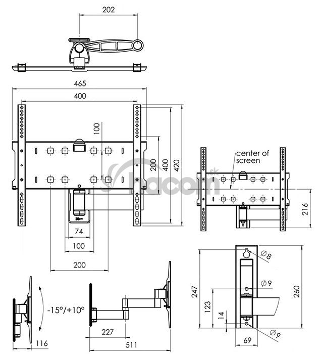 Spoľahlivý držiak s dvojitým ramenom a 3 kĺby
