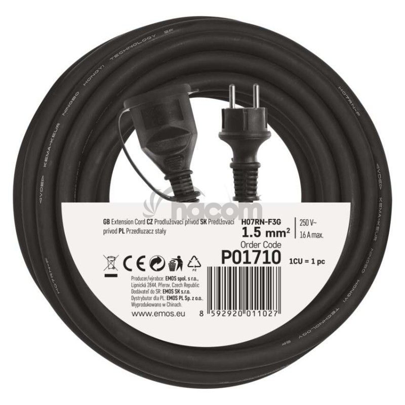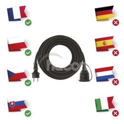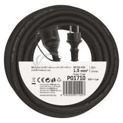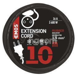 - Vonkajší predlžovací kábel 10 m / 1 zásuvka / čierny / guma-neoprén / 230 V / 1,5 mm2 P01710