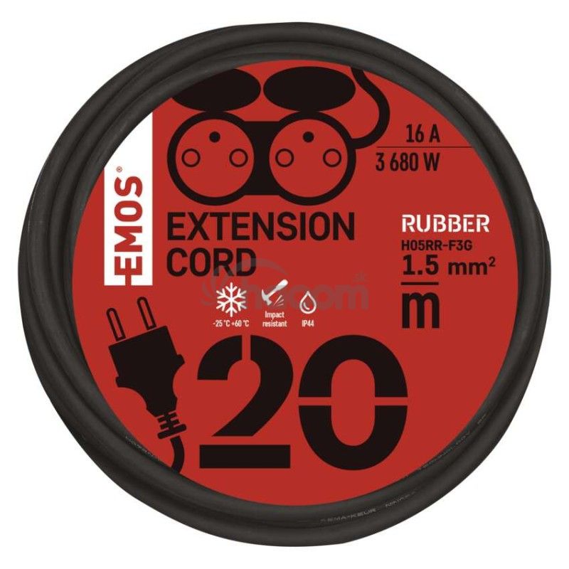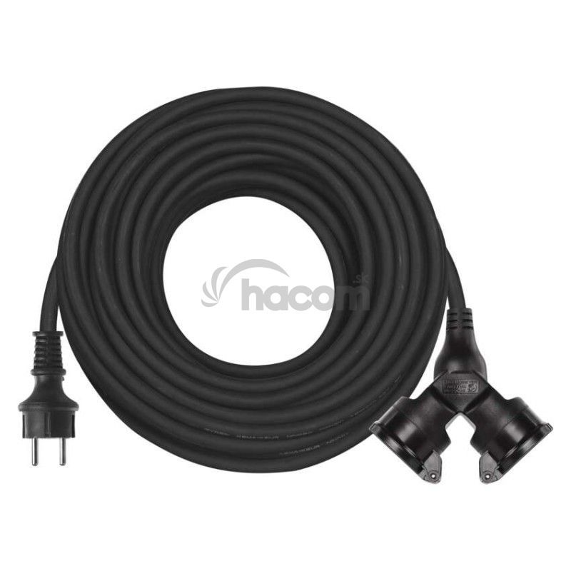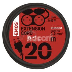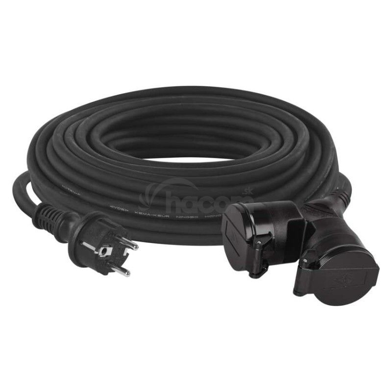 - Vonkajší predlžovací kábel 20 m / 2 zásuvky / čierny / guma / 230 V / 1,5 mm2 P0603