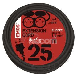 - Vonkajší predlžovací kábel 25 m / 2 zásuvky / čierny / guma / 230 V / 1,5 mm2 P0604