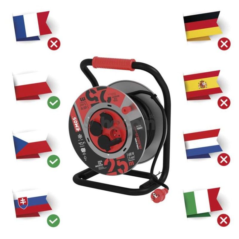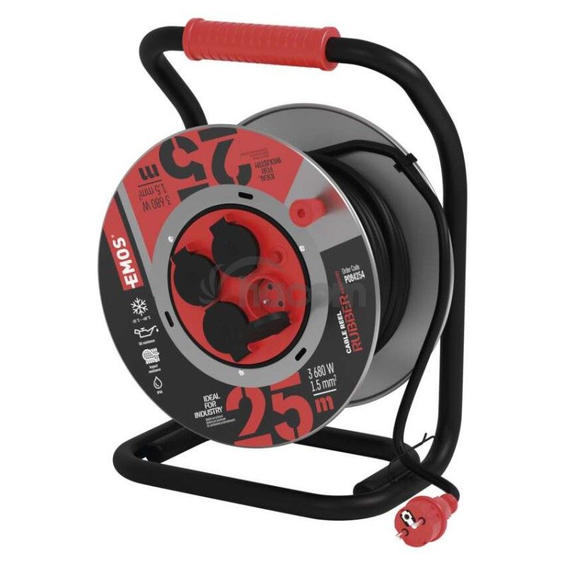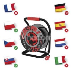 - Vonkajší predlžovací kábel na bubne 25 m / 4 zás. / čierny / guma-neoprén / 230V / 1,5 mm2 P084254