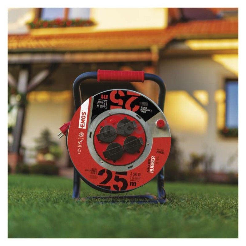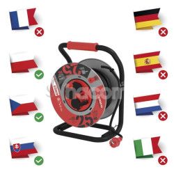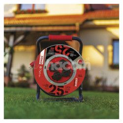 - Vonkajší predlžovací kábel na bubne 25 m / 4 zásuvky / čierny / guma / 230 V / 1,5 mm2 P084255