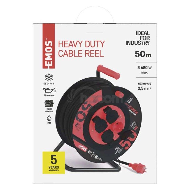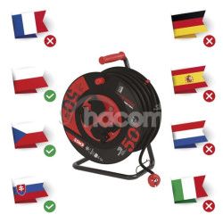 - Vonkajší predlžovací kábel na bubne 50 m / 4 zás. / čierny / guma-neoprén / 230V / 2,5 mm2 P084503