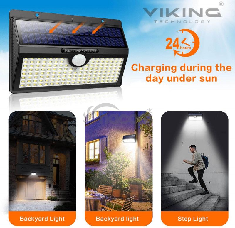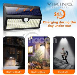 Vonkajšie solárne LED svetlo s pohybovým senzorom VIKING V138Solárne LED svetlo s pohybovým senzorom as 138ks vysoko svietiacimi LED diódami, je ideálna na osvetlenie vonkajších priestorov, ako je napr. Záhrada, schodisko, garáž, vstup do domu, atď., Bez možnosti pripojenia k el. sieti.