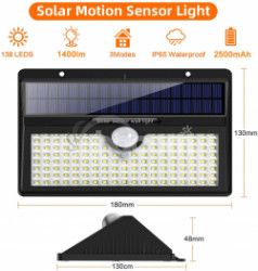 - Vonkajšie solárne LED svetlo s pohybovým senzorom V138 V138