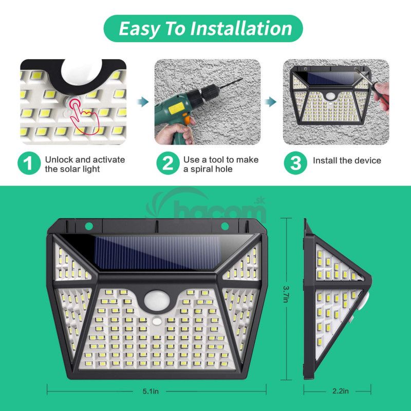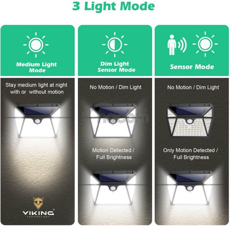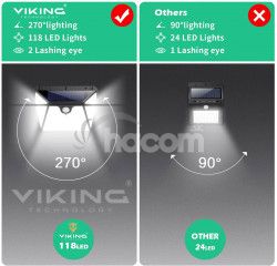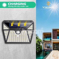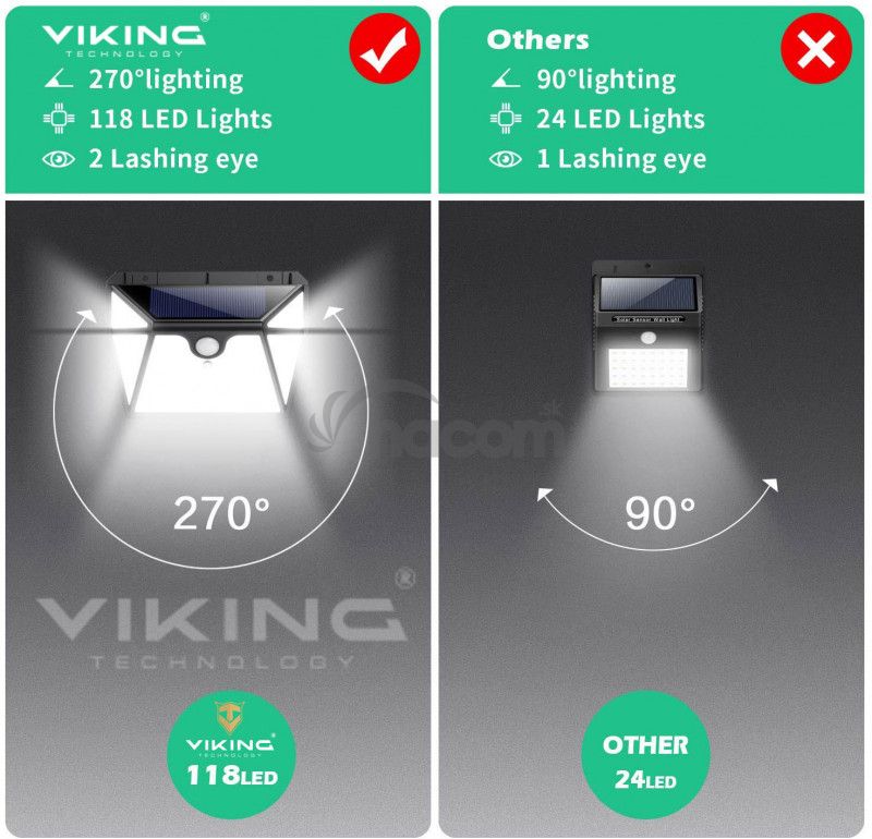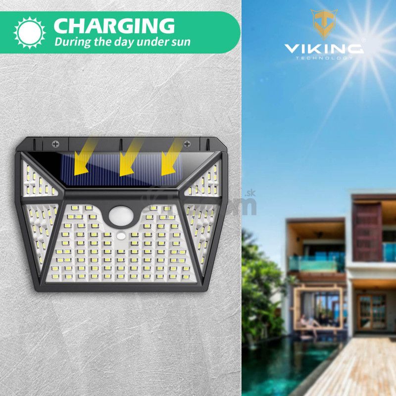 Vonkajšie solárne LED svetlo s pohybovým senzorom VIKING Z118Solárne LED svetlo s pohybovým senzorom as 118ks vysoko svietiacimi LED diódami, je ideálna na osvetlenie vonkajších priestorov, ako je napr. Záhrada, schodisko, garáž, vstup do domu, atď., Bez možnosti pripojenia k el. sieti.