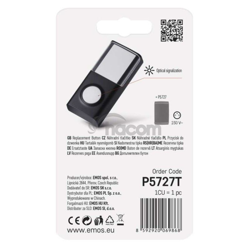 - Vonkajšie tlačidlo pre domový bezdrôtový zvonček P5727 na 1x CR2032 P5727T