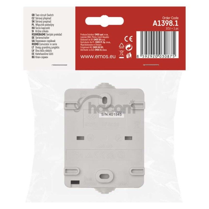 - Vypínač nástenný č. 5 IP54, 2 tlačidlá A1398.1