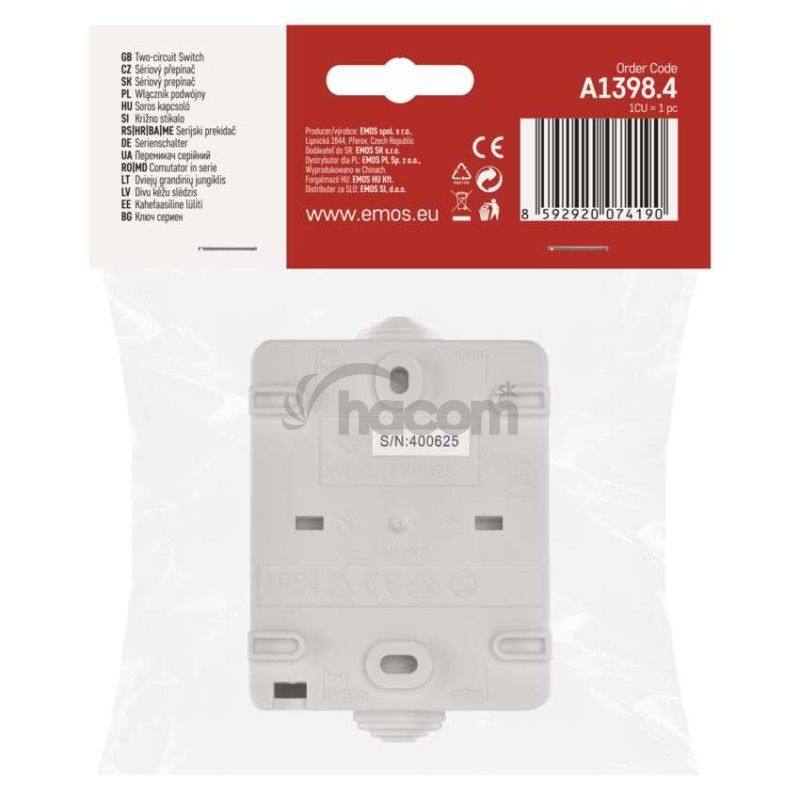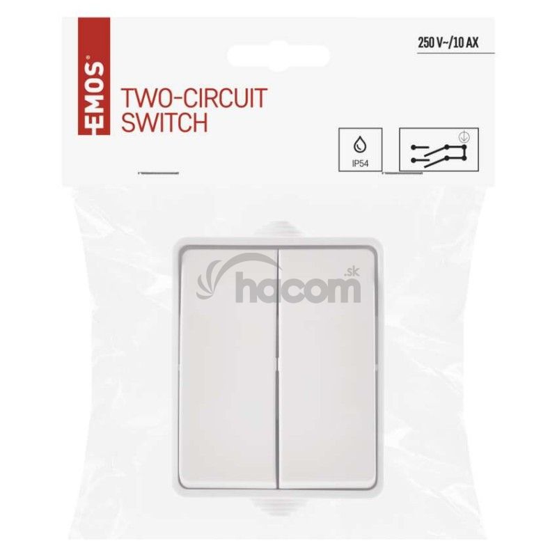 - Vypínač nástenný č. 5 IP54, 2 tlačítka A1398.4