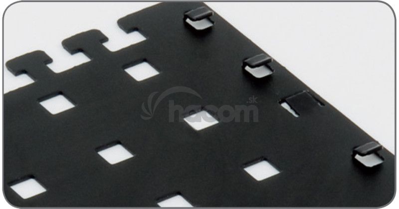 - pre lepšiu kontrolu káblov môžu byť na vyväzovacie panel inštalované vyvazovacie háčiky, ktoré však nie sú súčasťou dodávky