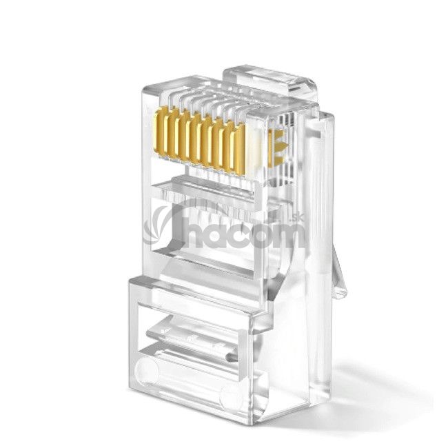 Konektor UTP RJ45, krimpovací, na drôt aj lanko, netienený, 8 pozícií 8 kontaktov.Výhodné balenie 1000ks.
