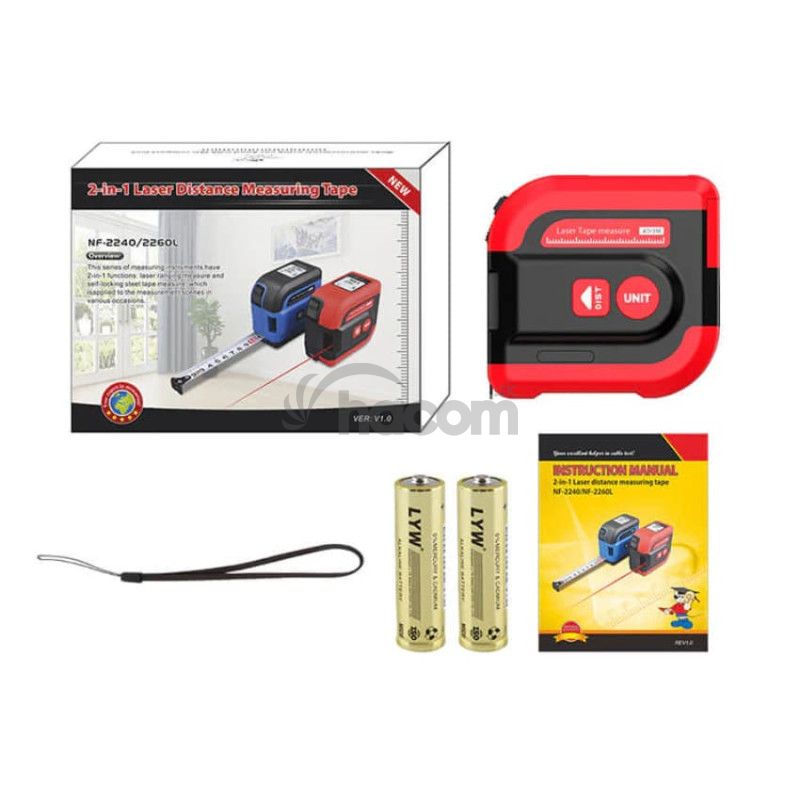 WSNF2240 laser meter 40m a zvinovací meter 5m, dĺžka, výška, dopočet plochy a objemu, dobre čitateľný displej, červený laser.Technické parametre: