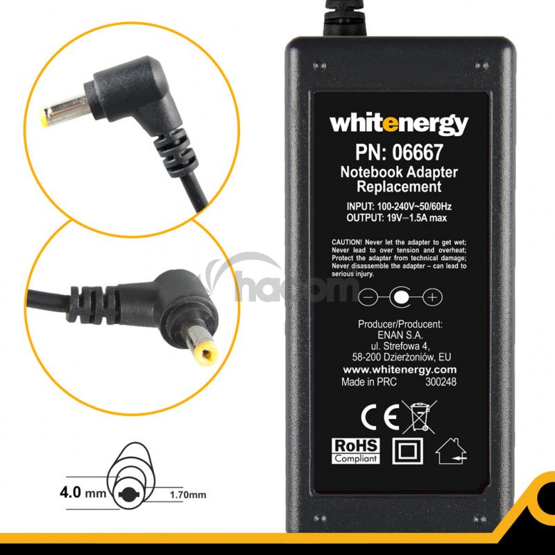 Adaptéry firmy Whitenergy spĺňajú najprísnejšie štandardy kvality a bezpečnosti. Kupujúci si môžu byť istí, že bol vyrobený pri zachovaní všetkých platných noriem. Na adaptér producent poskytuje 24 - mesačnú záruku.Svoj adaptér nájdete pomocou konfigurátora.