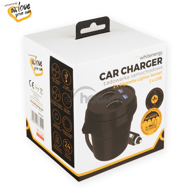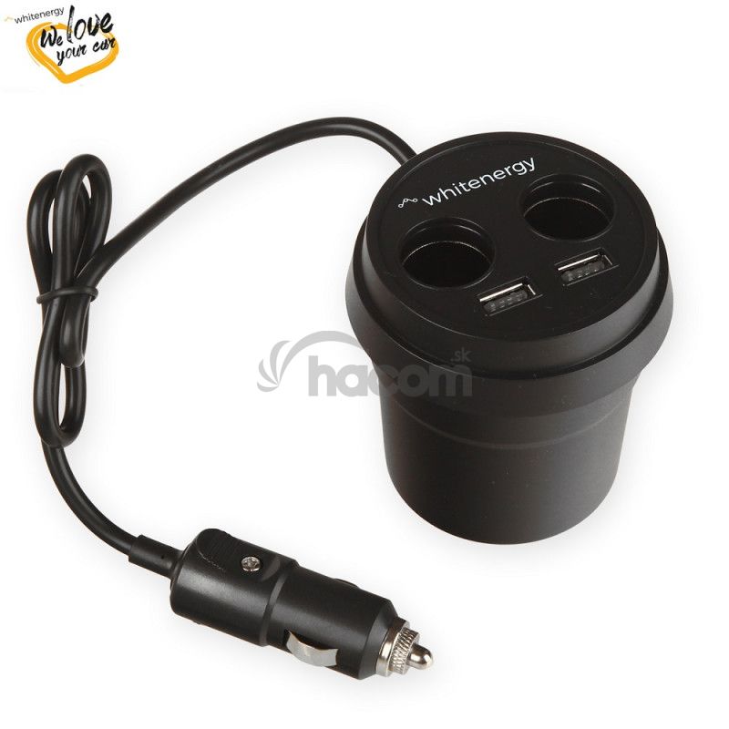 WE auto adaptér CUP 2 + 2x USB, 2xCS 5V 9.6aAuto adaptér v tvare šálky