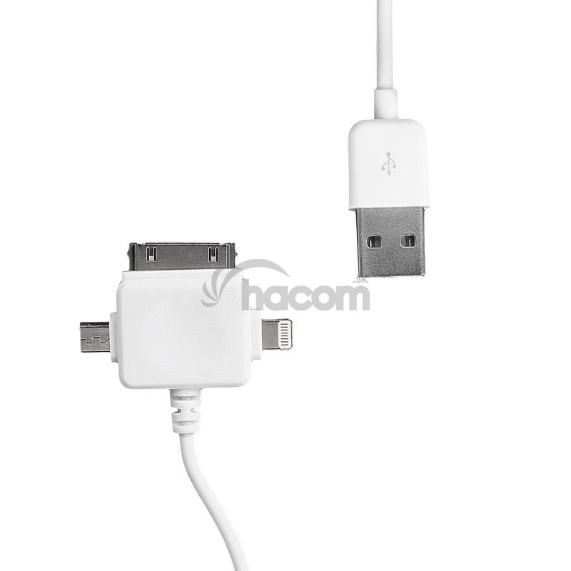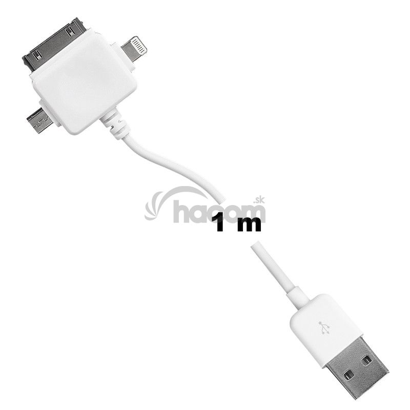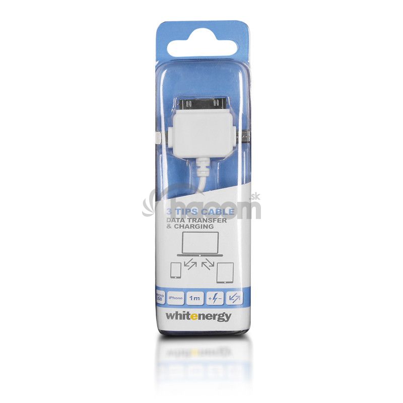 Whitenergy dátový a napájací kábel univerzálny, konektory USB 2.0 M - micro USB / iPhone4 / iPhone5, dĺžka 100cm, bielyParametre