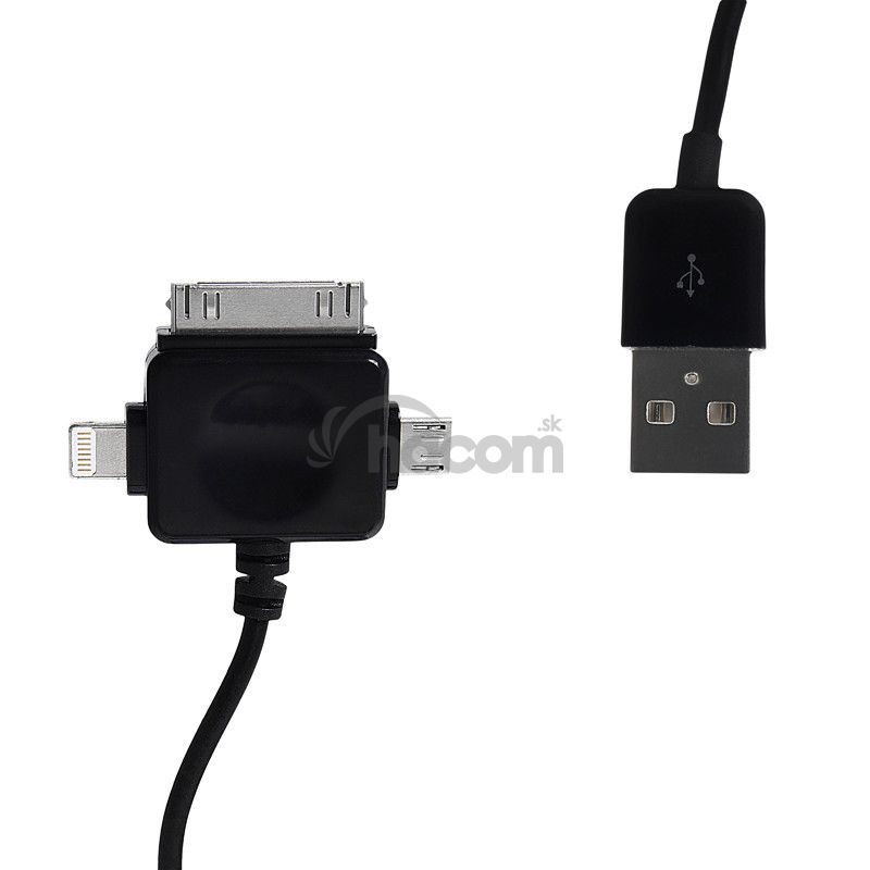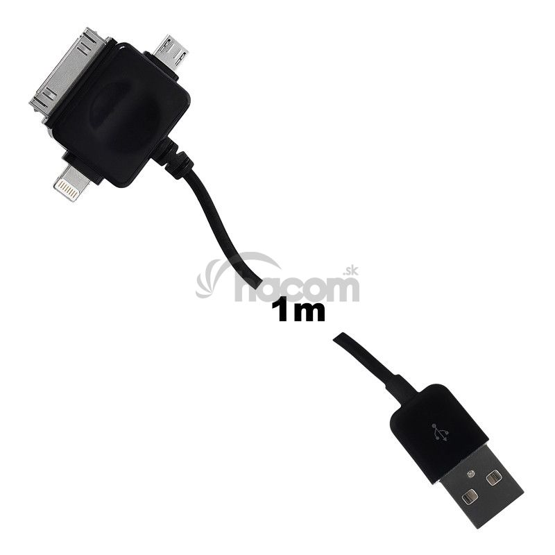 Whitenergy dátový a napájací kábel univerzálny, konektory USB 2.0 M - micro USB / iPhone4 / iPhone5, dĺžka 100cm, čiernyParametre