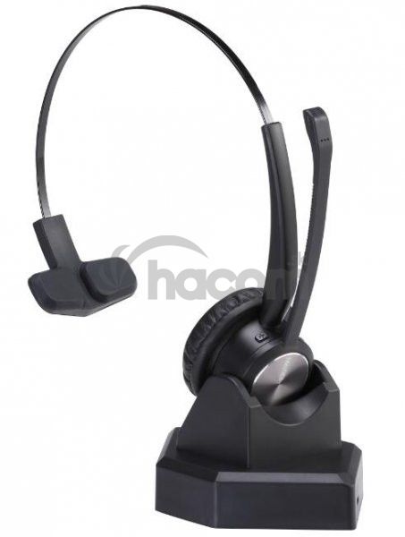 Bezdrôtová jednoušní náhlavná súprava v modernom dizajne, s mikrofónom.Bezdrôtová jednoušní náhlavná súprava s moderným dizajnom a praktickou dokovacou stanicou.