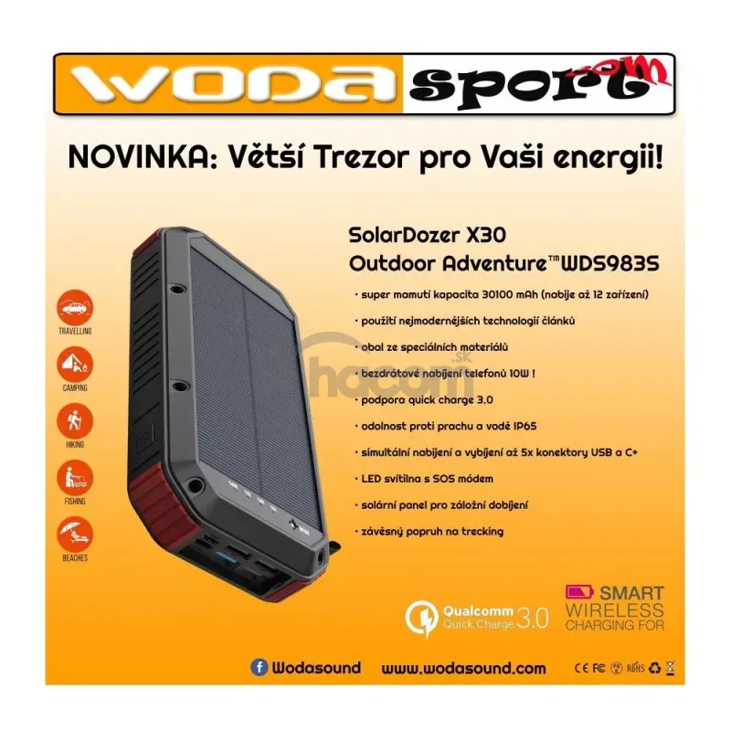 - Wodasport - X30 - Solárna powerbanka Wodasport® SolarDozer X30, Outdoor Adventure™ 30100 mAh 7v1 X30