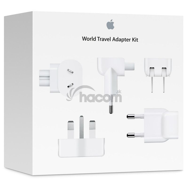 World Travel Adapter KitSúprava cestovných adaptérov Apple obsahuje sedem zástrčiek do rôznych elektrických zásuviek po celom svete. Príslušná geografická oblasť je laserom označená na každej zástrčke. Táto súprava umožňuje cestovateľom pripojenie k elektrickej sieti vo väčšine krajín sveta.