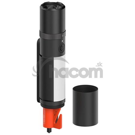 Aby tej pomoci v núdzových situáciách nebolo málo, baterka disponuje rezákom autopásov a pod odskrutkovateľným viečkom schovaným hrotom, s ktorým spoľahlivo vybijete autosklo.