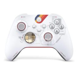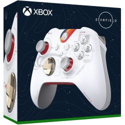 Bronzový smerový ovládač ladne dopĺňa inak čisté a technické prevedenie bielej čelnej strany ovládača. Ukážte status neohrozeného cestovateľa farebnými značkami okolo tlačidla Xbox, ktoré sa inšpirovali Konšteláciou a nabáda k objavovaniu „Za všetkých, v ústrety Starfieldu“
