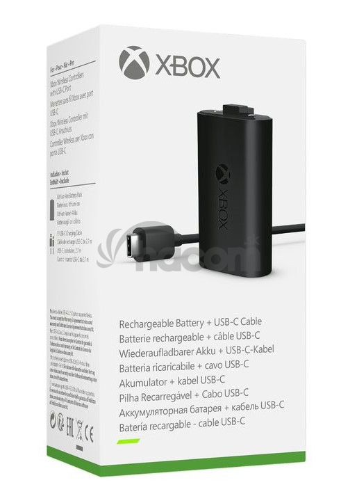 Dobíjacia batéria Xbox + USB-C kábel , plné nabitie za 4 hodiny, nabíja sa počas hrania aj v stand-by režime, až 30 hodín prevádzky na jedno nabitie, kompatibilný iba s originálnymi gamepadmi Xbox Wireless Controller s USB-C konektorom.Batérie AA sú minulosťou