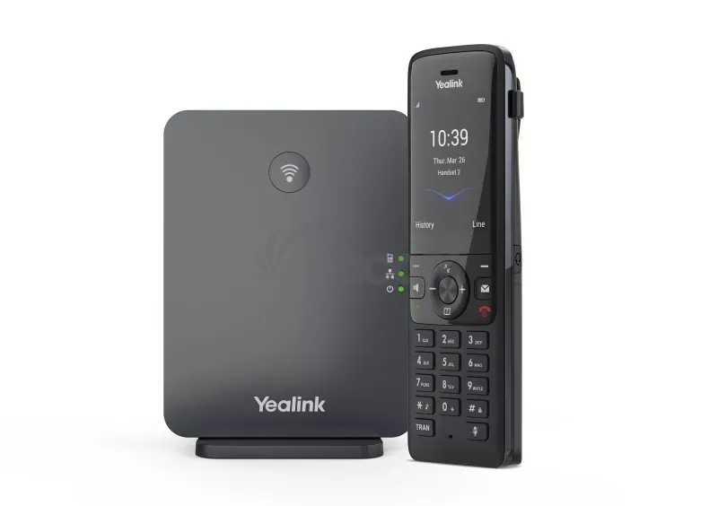 Yealink W78P je vysoko výkonný DECT bezdrôtový SIP telefónny systém, ktorý dokáže zaregistrovať 10 rúčok Yealink DECT W78H, je ideálnym riešením pre malé a stredné podniky. Umožňuje vám využiť mobilitu a flexibilitu, výrazne eliminuje ďalšie problémy s kabelážou a poplatkami. Ponúka viac funkcií, liniek a viac mobility, podporuje až 10 SIP účtov a 20 súčasných hovorov, zlepšuje silu signálu a odozvu, aby poskytol dobrú a stabilnú skúsenosť pri vašej telefónnej komunikácii. DECT základňa poskytuje signál pre rúčku v dosahu 50 m vo vnútorných priestoroch a až 300 m vonku.Vďaka novej technológii Noise Cancellation si môžete užívať jasnejšie a kvalitnejšie hlasové hovory. Prináša bezproblémovú správu hovorov pre užívateľov „v pohybe“ vďaka kombinácii SIP a DECT technológiám.