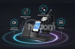 Yealink WH66 MONO je špičková bezdrôtová DECT náhlavná súprava na jedno ucho, ktorá otvára úplne nové možnosti na pracovnom stole. Je to viac než len základňa pre náhlavnú súpravu, uľahčuje správu požiadaviek na obchodnú komunikáciu a ďalších USB zariadení. Poskytuje tiež veľkú flexibilitu so sadou integrovaných funkcií, ktoré vám uľahčia každodennú rutinu.UC Workstation dáva užívateľom možnosť bezproblémovej práce s hlavnými UC platformami a natívnej integrácii s Yealink IP telefónmi. 4 palcová (480 x 800) kapacitná dotyková obrazovka základne ponúka nové pracovné skúsenosti, iba jeden dotyk ovláda všetko. Je to pracovná stanica, spravuje telefónne hovory, pripojí sa k viacerým zariadeniam (stolný telefón/mobilný telefón/počítač), bezdrôtovo nabíja mobilný telefón a dokonca všetko prehrať na hlasný reproduktor. Najlepšie zo všetkého je, že na nasadenie takejto multifunkčnej pracovnej stanice stačí iba priame pripojenie bez ďalších škatuliek.