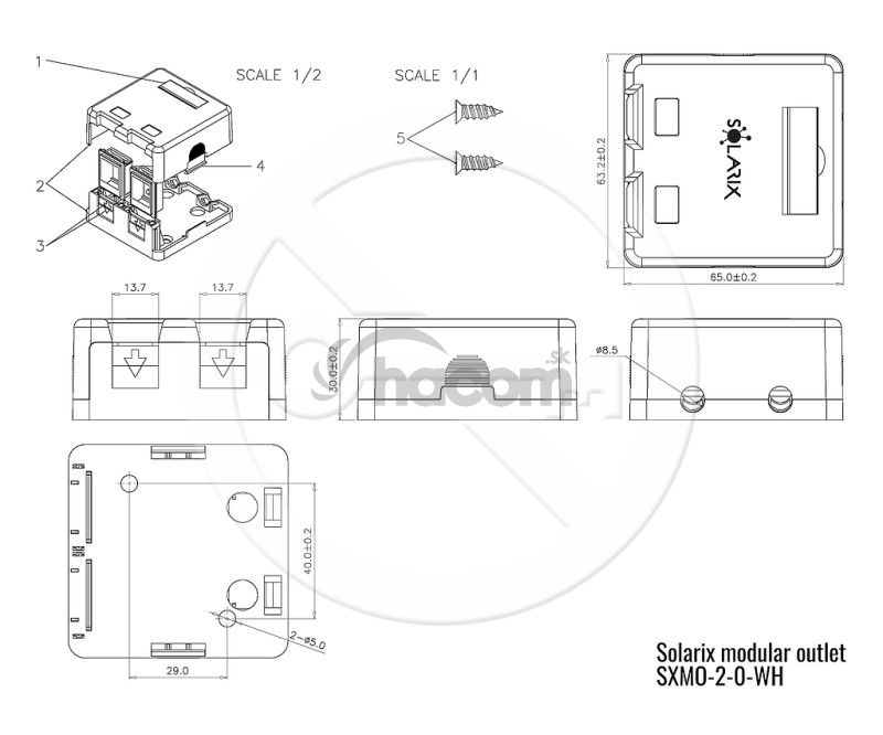 - Zásuvka modulárna Solarix pre 2 keystony na omítku biela SXMO-2-0-WH 23100122