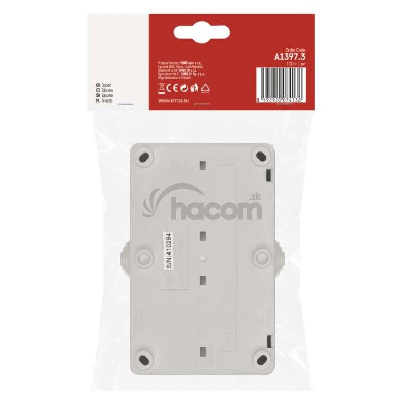 Zásuvka nástenná dvojitá, biela, IP44 A1397.3