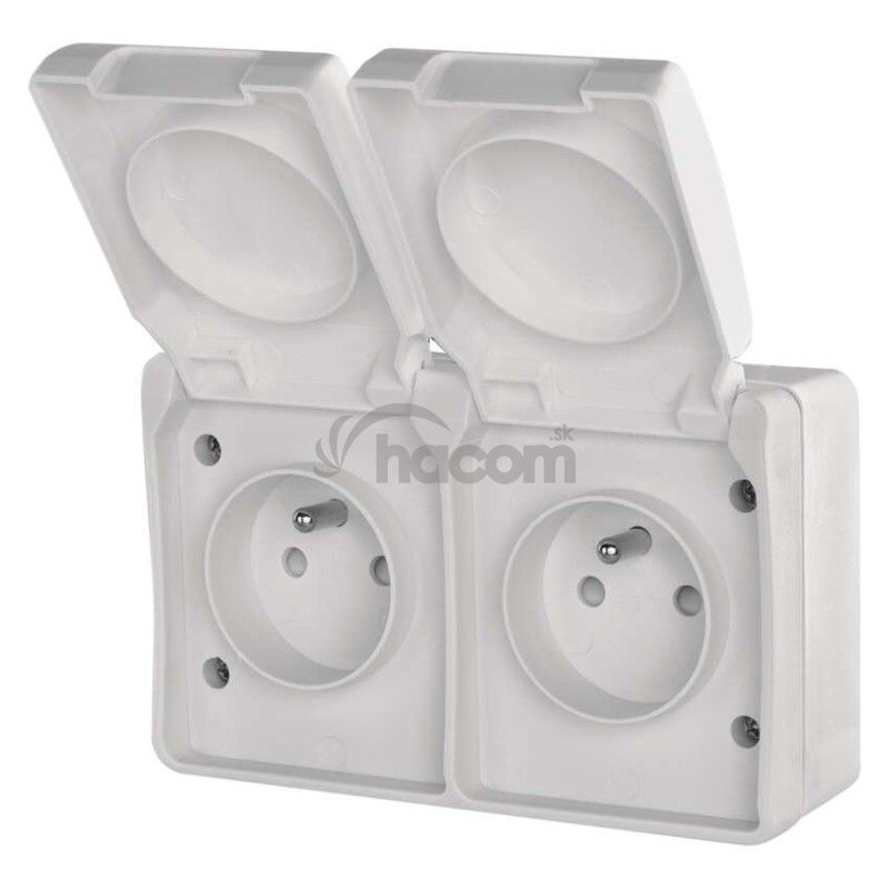- Zásuvka nástenná dvojitá, biela, IP44 A1397.3