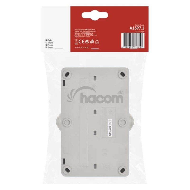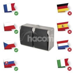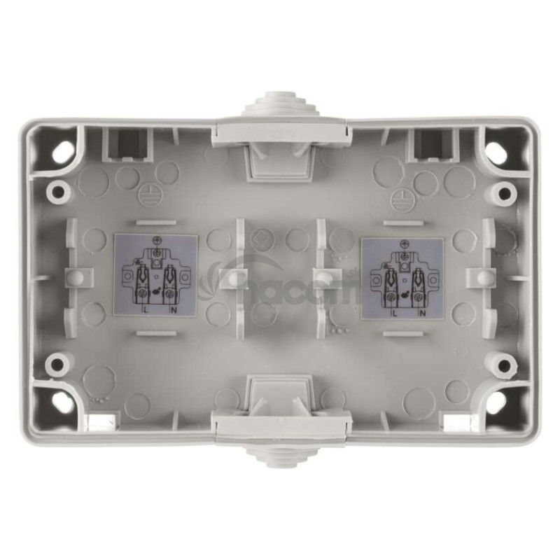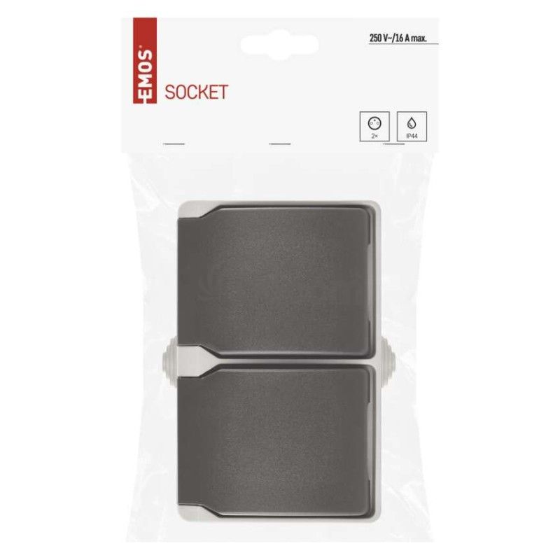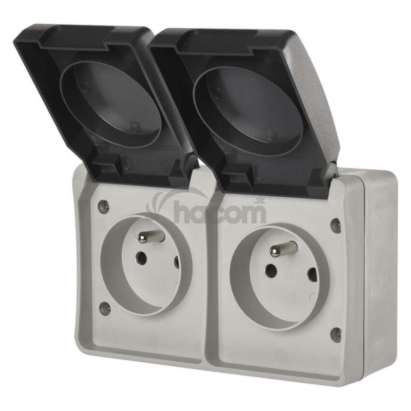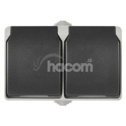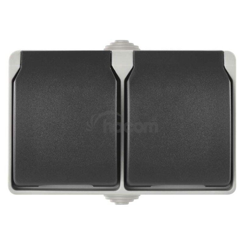 - Zásuvka nástenná dvojitá, šedo-čierna, IP44 A1397.1
