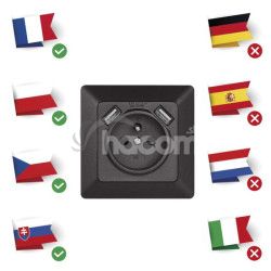 - Zásuvka s USB 2,1A max., antracit A6000.2